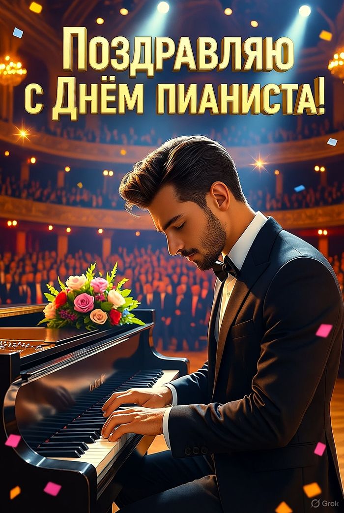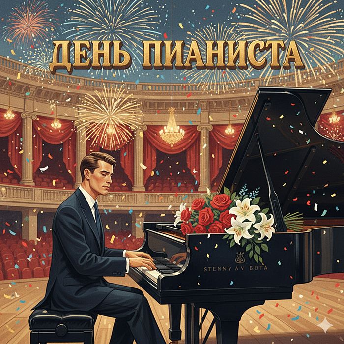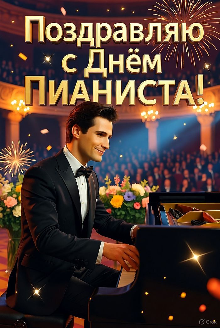 Красивые и прикольные поздравления с праздником День пианиста в картинках. Собрание советских ретро открыток. День пианиста — относительно молодой международный неофициальный праздник, который ежегодно отмечается 8 ноября. Его суть — почтить исполнителей, преподавателей, композиторов и всех, чья жизнь так или иначе связана с фортепиано и другими клавишными инструментами; укрепить связь между профессионалами и любителями, побудить к открытому исполнению музыки в публичных пространствах и поддержать живую пианистическую культуру.